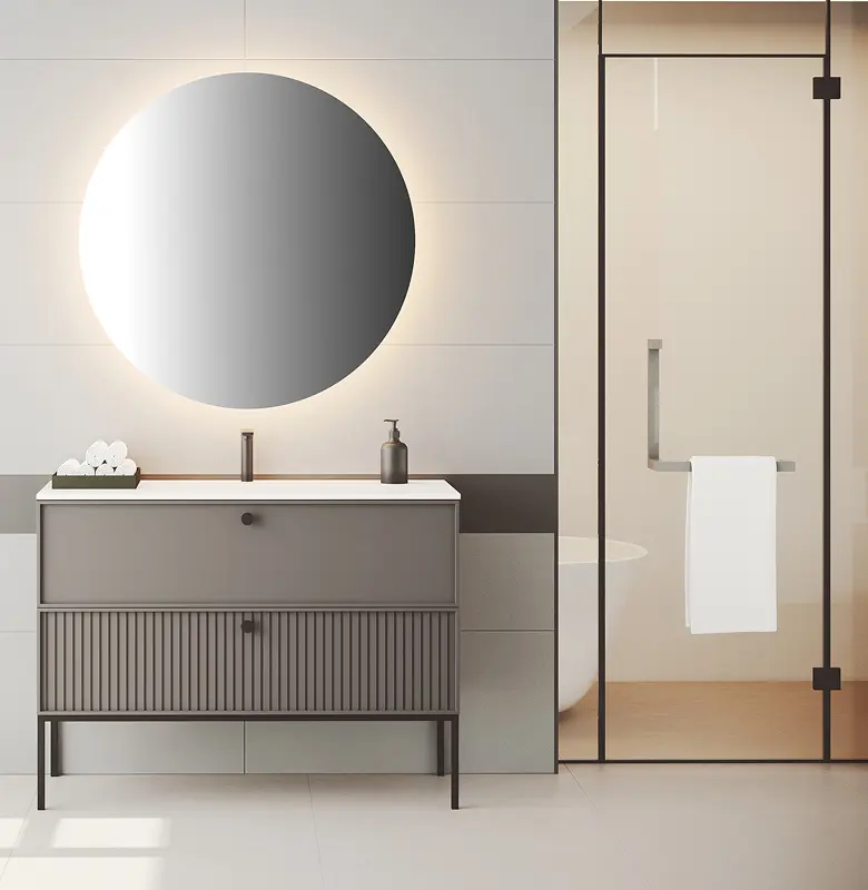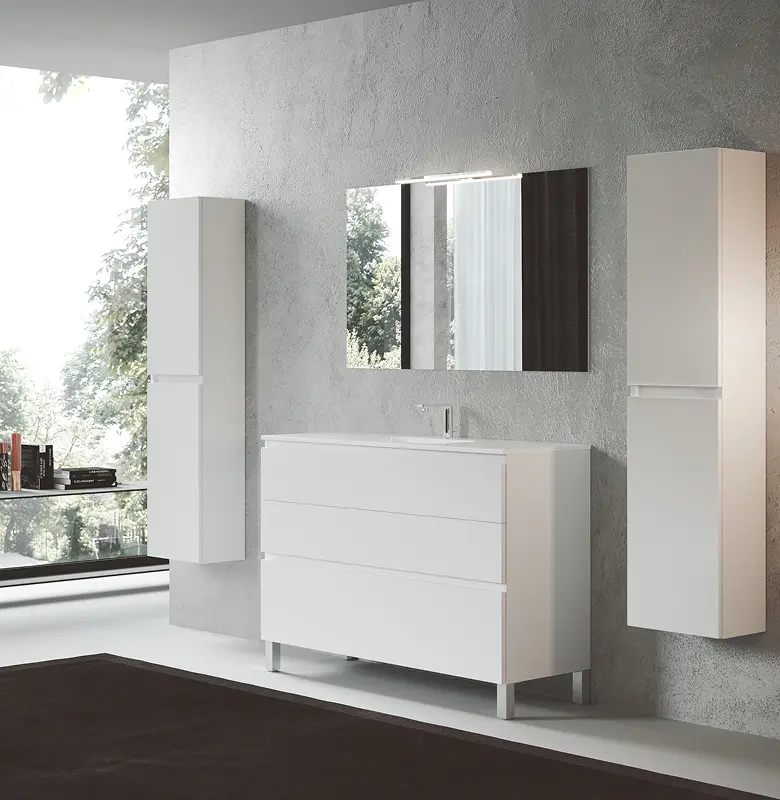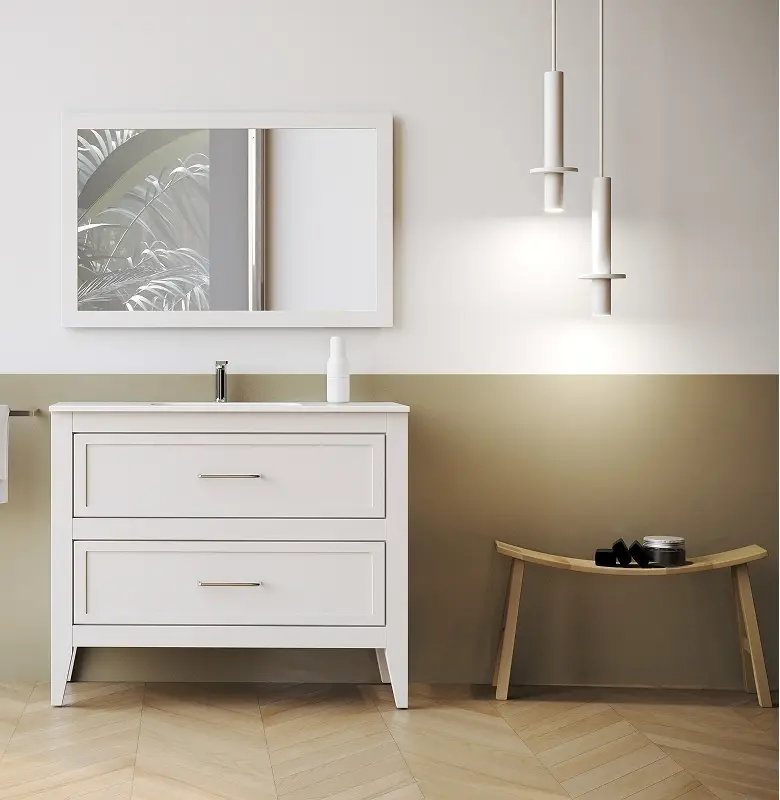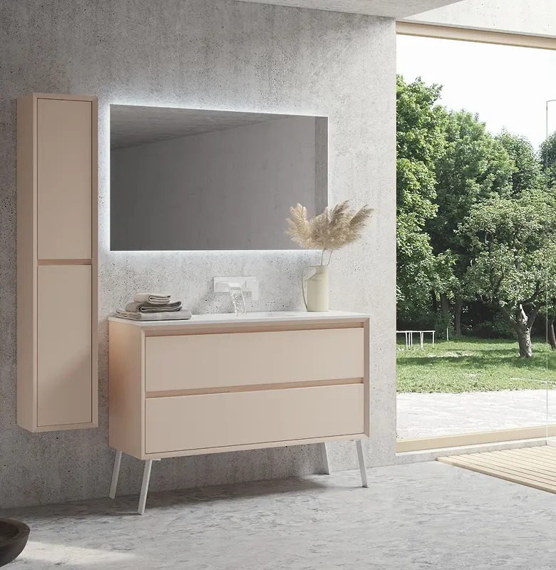 Los muebles de baño con patas se apoyan directamente en el suelo, aportando una sensación de robustez y estabilidad.