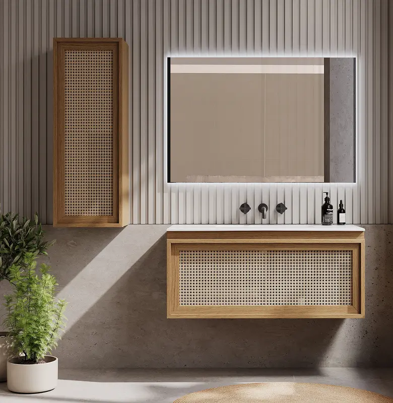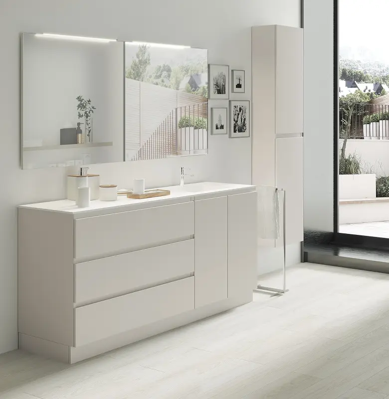 Los muebles de baño suspendidos, fijados a la pared, destacan por su diseño moderno y minimalista. Al no tener contacto con el suelo, generan una mayor sensación de amplitud y ligereza, a la vez que facilitan la limpieza diaria del baño.